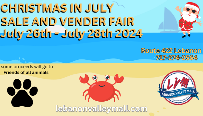 Come on out and celebrate Christmas in July. Some of the shops at the mall will also be joining in on the celebration. Lots of vendors/crafters will be attending. Something for everyone!